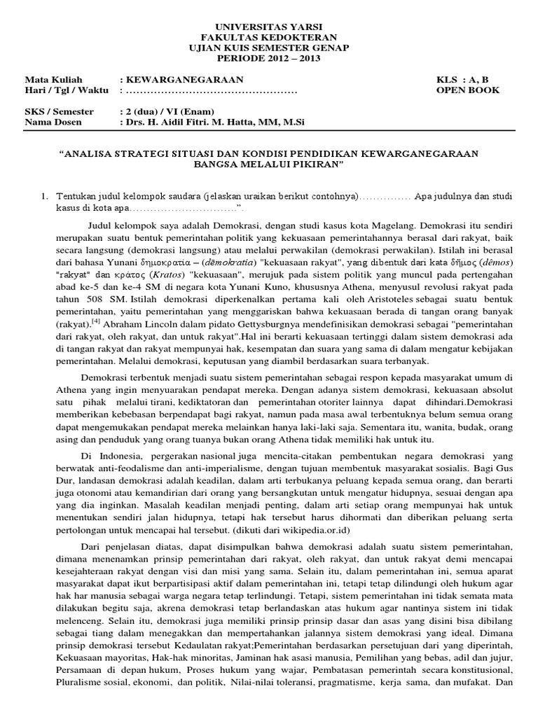 Soal Soal Pkn Perguruan Tinggi Maulana Yudrick Academia Edu