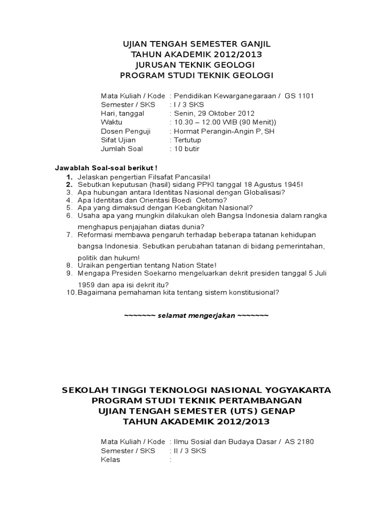 Soal Pkn Untuk Ujian Tengah Semester Gasal
