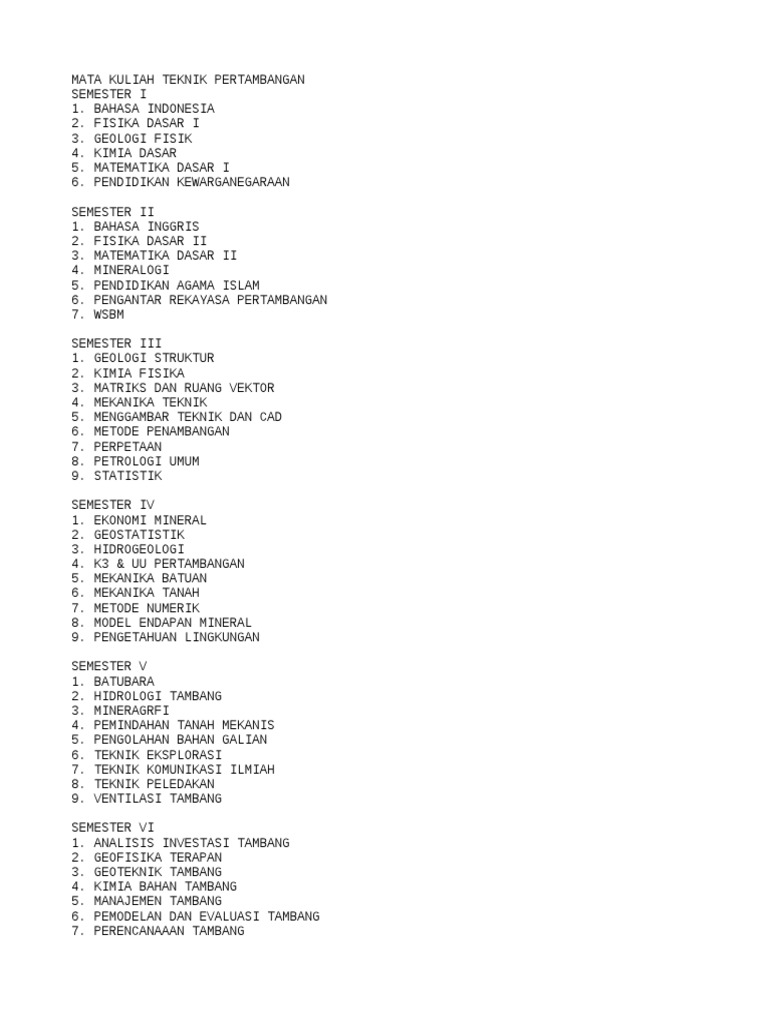 Mata Kuliah Teknik Pertambangan