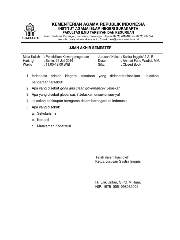 Soal Ujian Akhir Semester Kewarganegaraan Docx