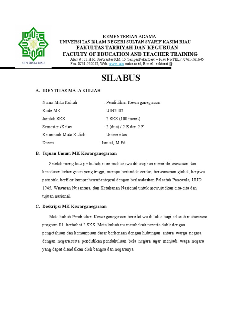 A3 Silabus Pendidikan Kewarganegaraan 2 Nika Saputra Academia Edu