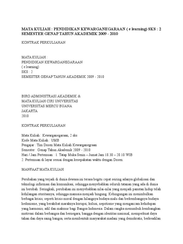 Kontrak Perkuliahan Mata Kuliah Pendidikan Kewarganegaraan Sks 2