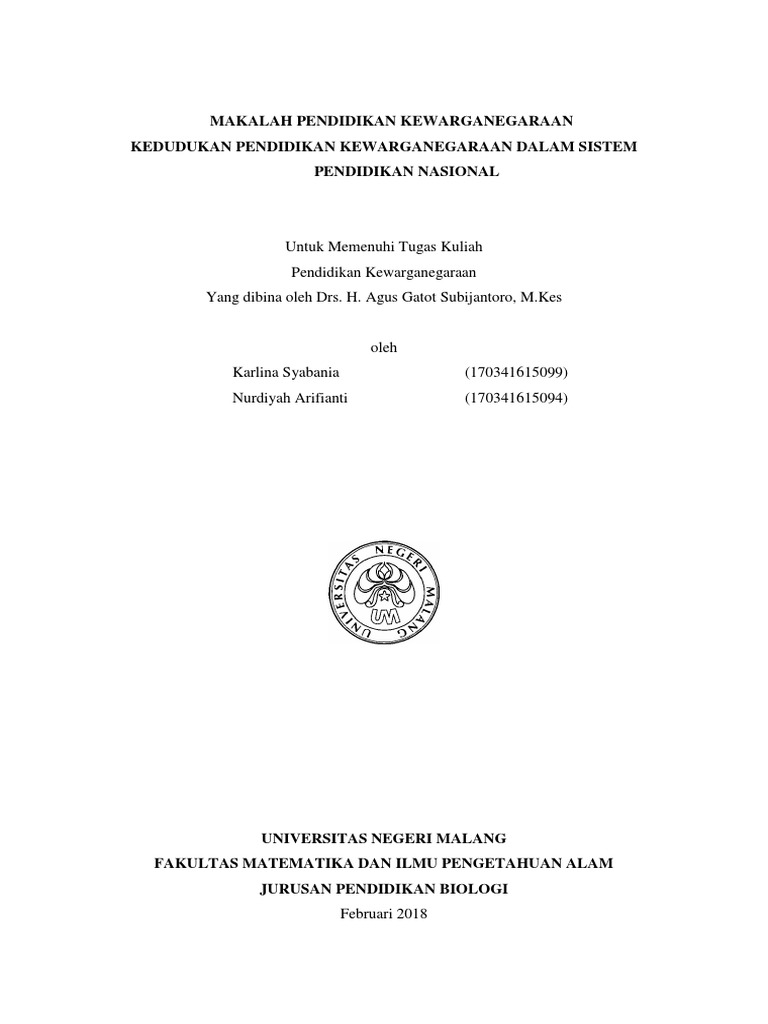 Makalah Kita Kedudukan Pendidikan Kewarganegaraan Dalam Sistem Nasional