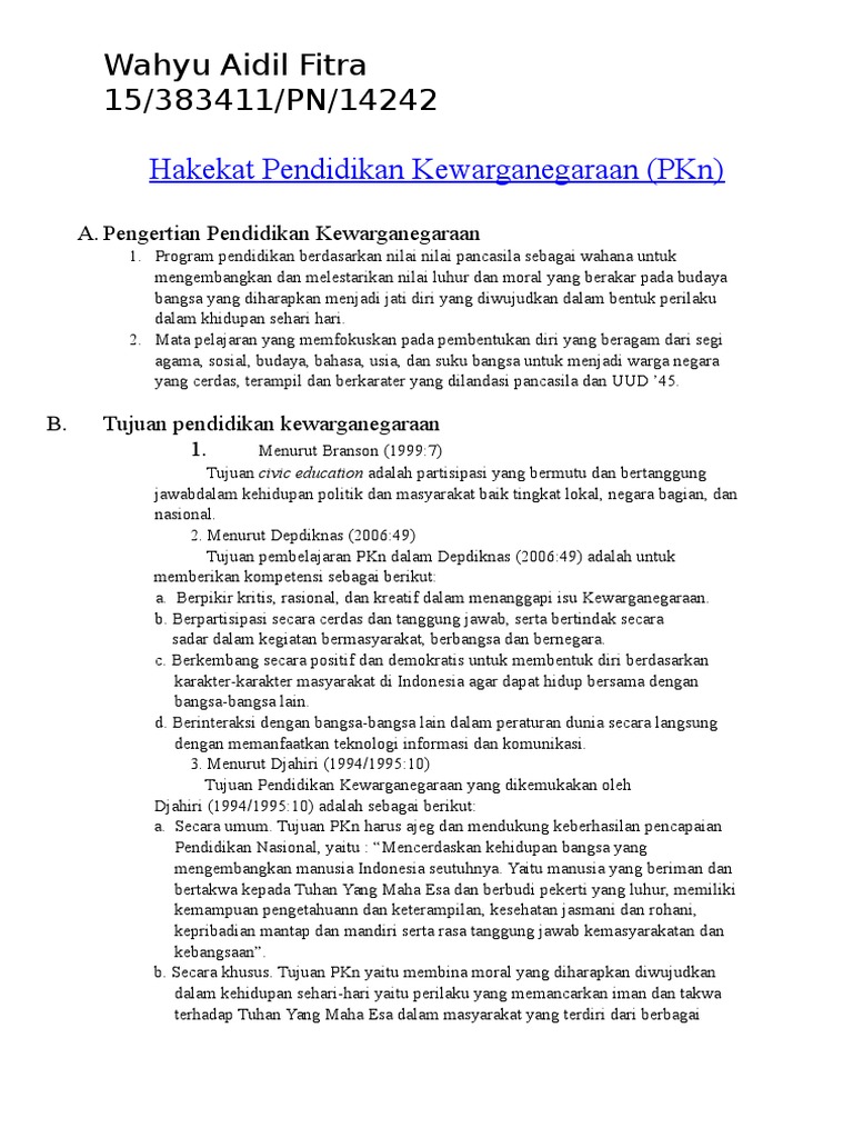 Hakekat Pendidikan Kewarganegaraan Rangkuman Docx