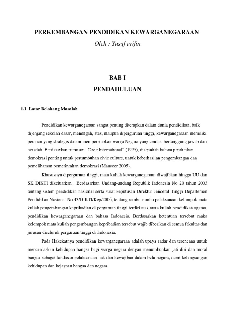 Bab I Pengantar Pendidikan Kewarganegaraan A Perkembangan