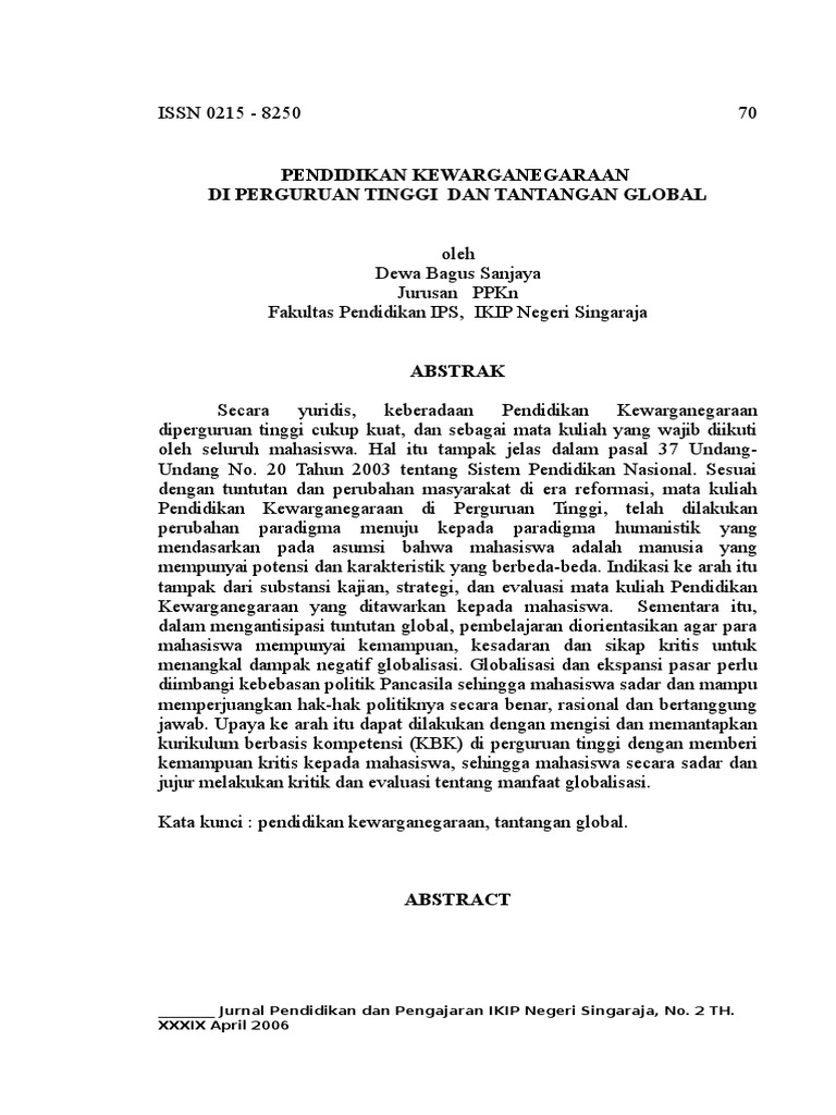 Urgensi Pkn Sebagai Civic Education Di Indonesia R Herawati