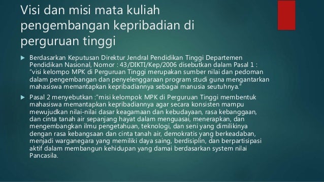 Berdasarkan ketentuan tersebut maka kelompok mata kuliah pengembangan kepribadian. Visi dan misi kelompok mata kuliah pengembangan kepribadian. Sementara soedijarto mengartikanpendidikan kewarganegaraan sebagai pendidikan.