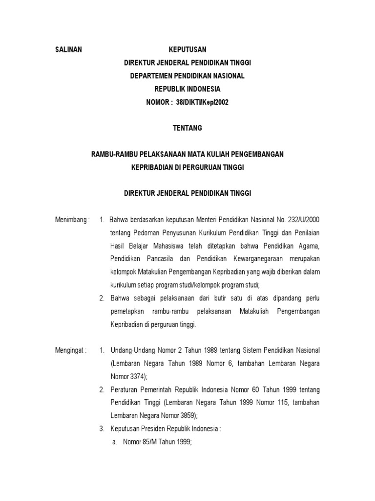 Mata kuliah pendidikan kewarganegaraan ditetapkan sebagai mata kuliah pengembangan kepribadian. Dasar mata kuliah pendidikan kewarganegaraan. 38u2002 tentang rambu rambu substansi kajian mata kuliah pengembangan kepribadian meliputi.