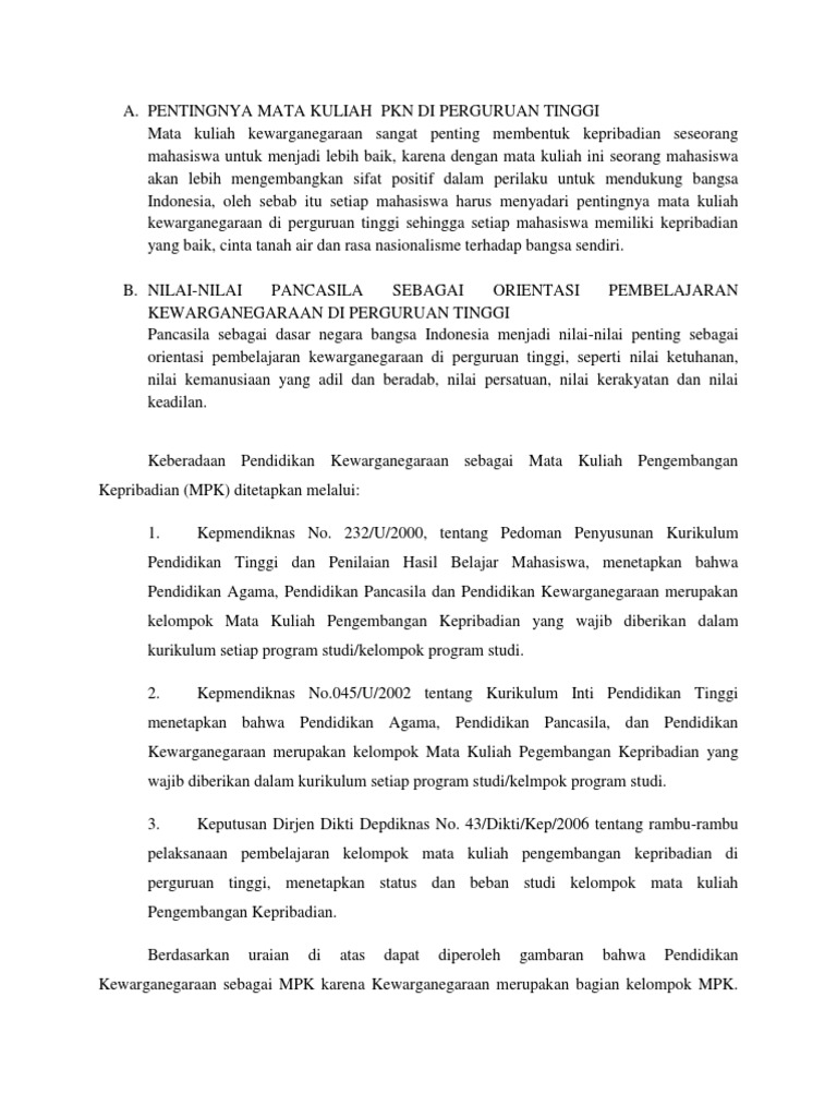 Pkn Sebagai Mpk Matakuliah Pengembangan Kepribadian