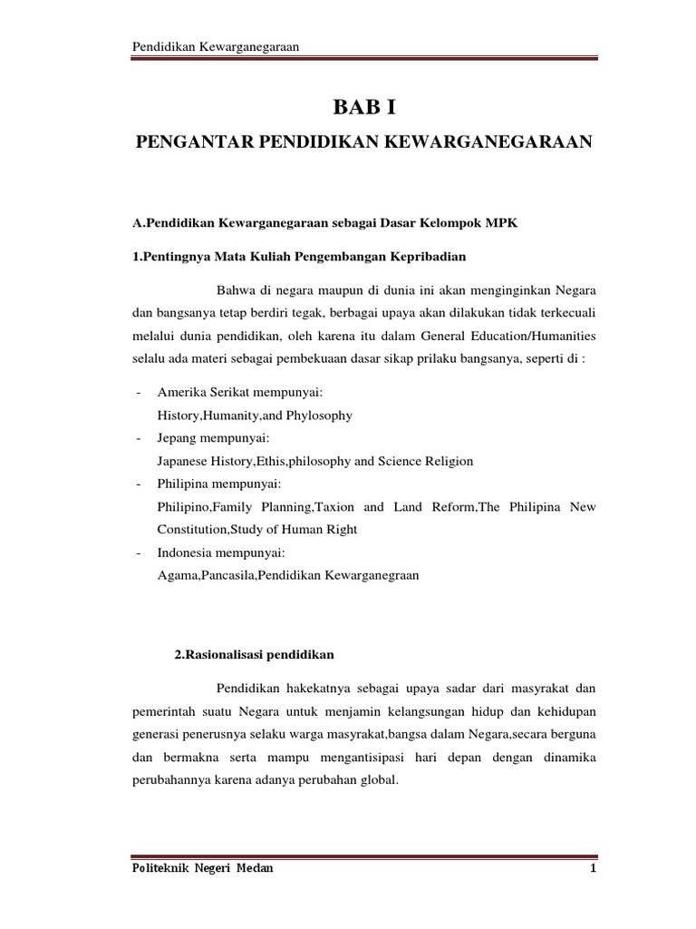 Rangkuman Buku Mata Kuliah Kewarganegaraan Politeknik Negeri Medan Docx