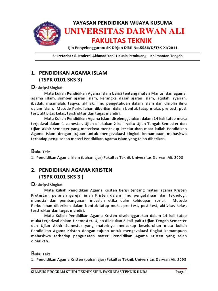 Silabus Mata Kuliah Nama Mk Pendidikan Agama Islam Kode