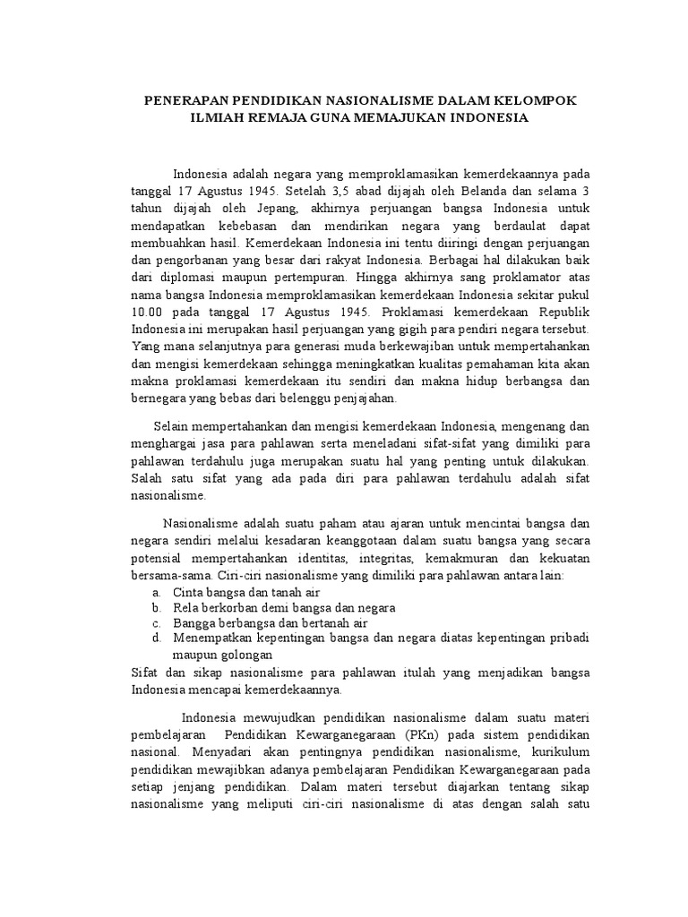 Home artikel opini menumbuhkan semangat nasionalisme dalam bingkai pendidikan. Mengajar pendidikan kewarganegaraan kelas vi sd negeri 2 karimunjawa. Ada 3 pemikiran besar tentang watak nasionalisme indonesia yang menjadi pada masa.