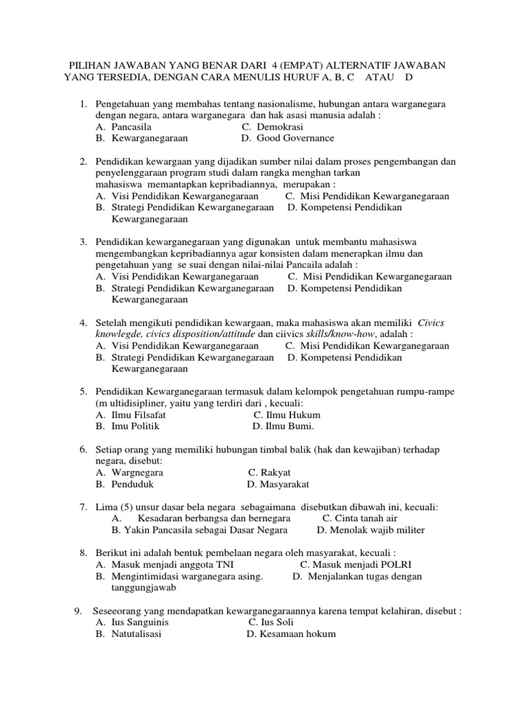 Jawaban Soal Latihan Mata Kuliah Pendidikan Pancasila Dan