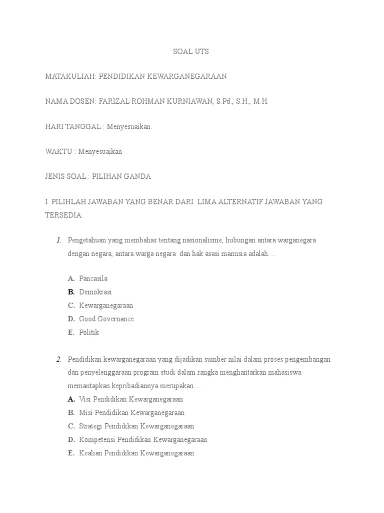 Soal Obyektif Kewargaanegaraan Laurentius Laki