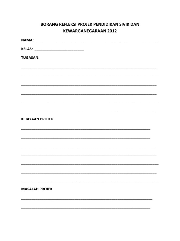 Borang Refleksi Projek Pendidikan Sivik Dan Kewarganegaraan 2012