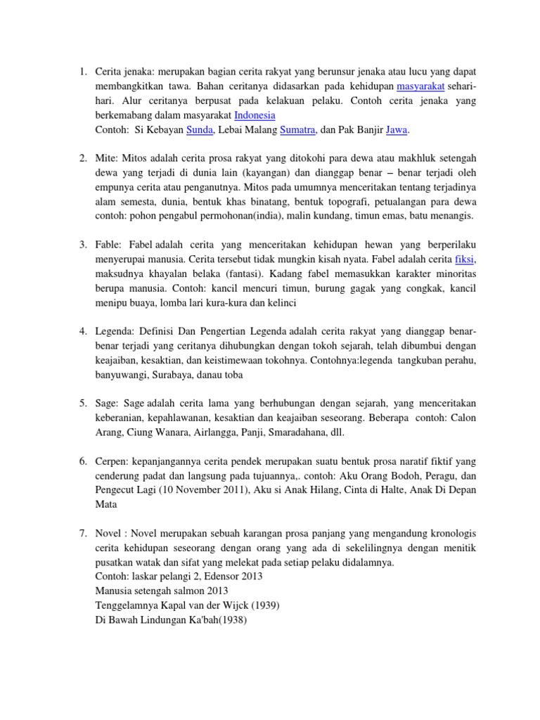 Contoh Cerita Jenaka Mite Fabel Legenda Saga Cerpen Dan Novel
