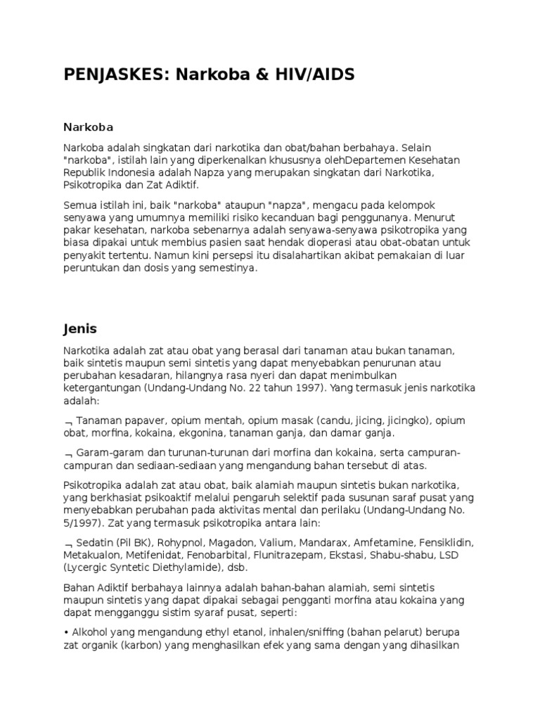 Materi Penjas Narkoba Dan Hiv Dan Aids Penjaskes Narkoba Hiv Aids