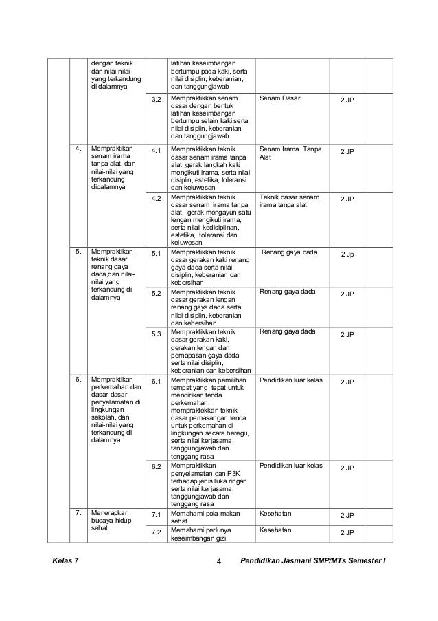 9 1 Silabus Penjaskes Smp Mts Kls Vii Kurikulum 2013