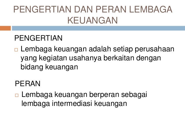 Fungsi Dan Peranan Lembaga Keuangan Silmiikaffah