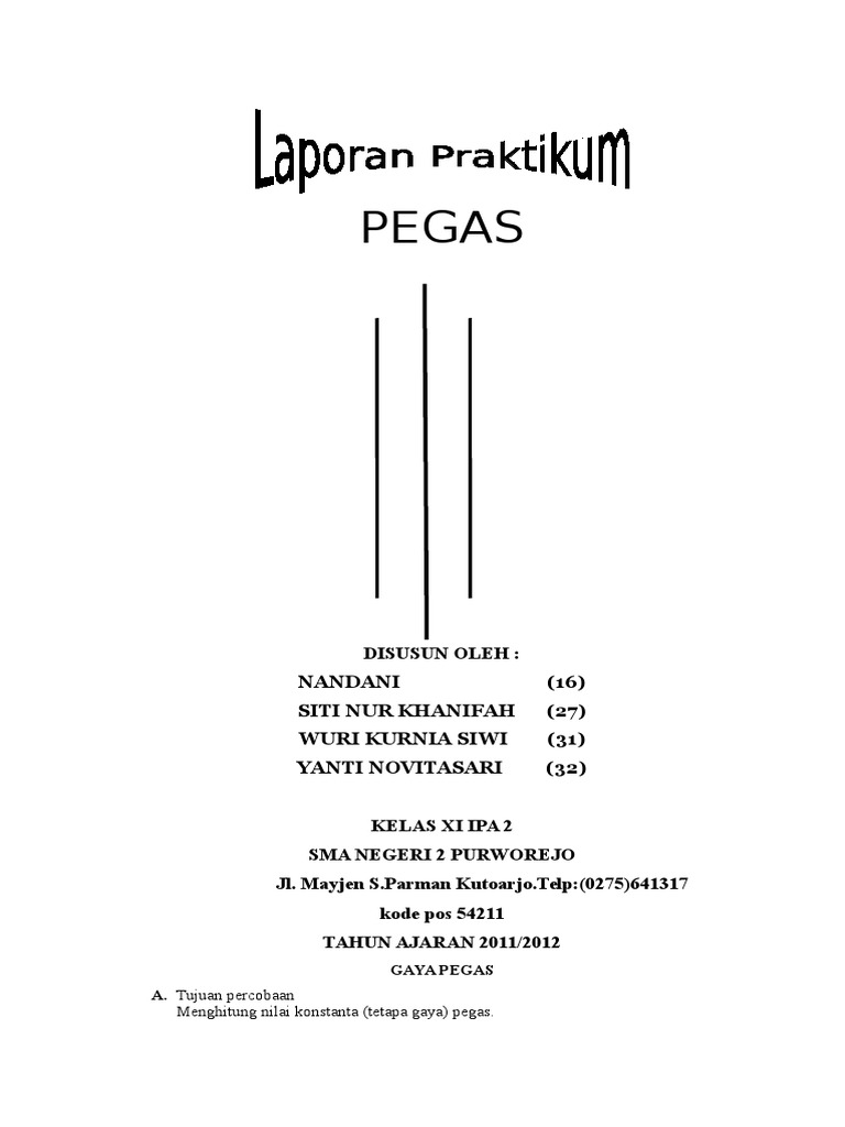 Stevanus alditian lai apin livia margaretha precillia yolandhita grevaldo imanuel reynard yulius song. Tujuan percobaan mengamati gaya pegas b. Tugas praktikum fiska xi ipa gaya pegas.