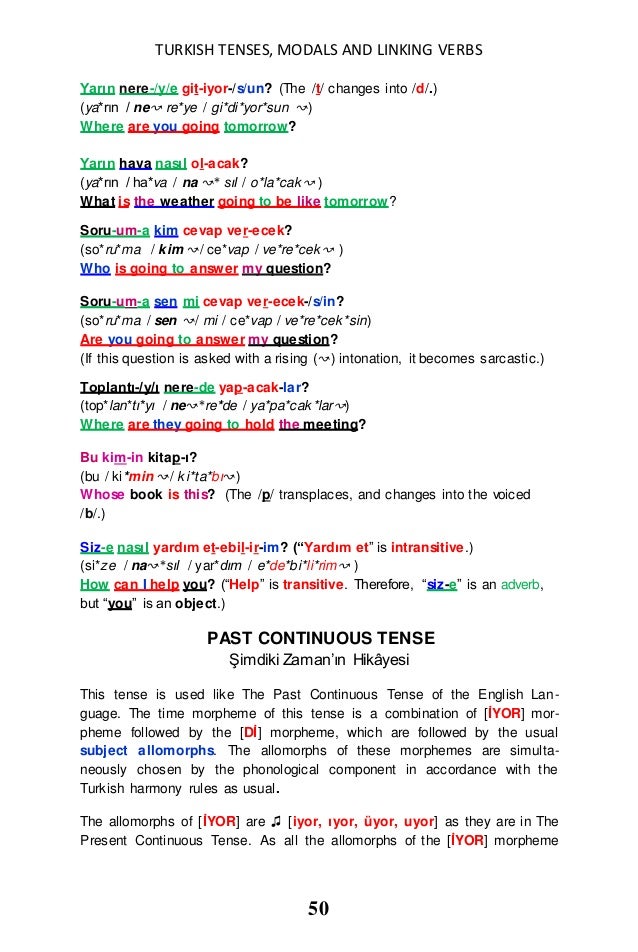 Turkish Tenses Modals And Linking Verbs In Turkish And English Are D