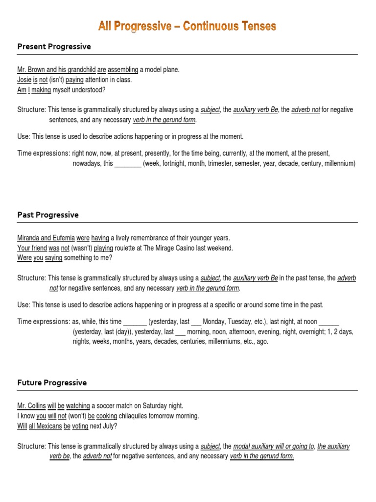 All Progressive Continuous Tenses Verb Grammatical Tense