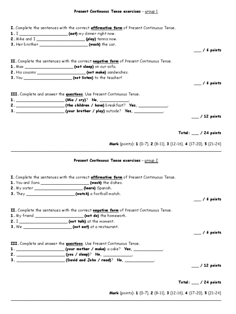 English Present Tense And Present Continuous Tense Worksheet Tpt