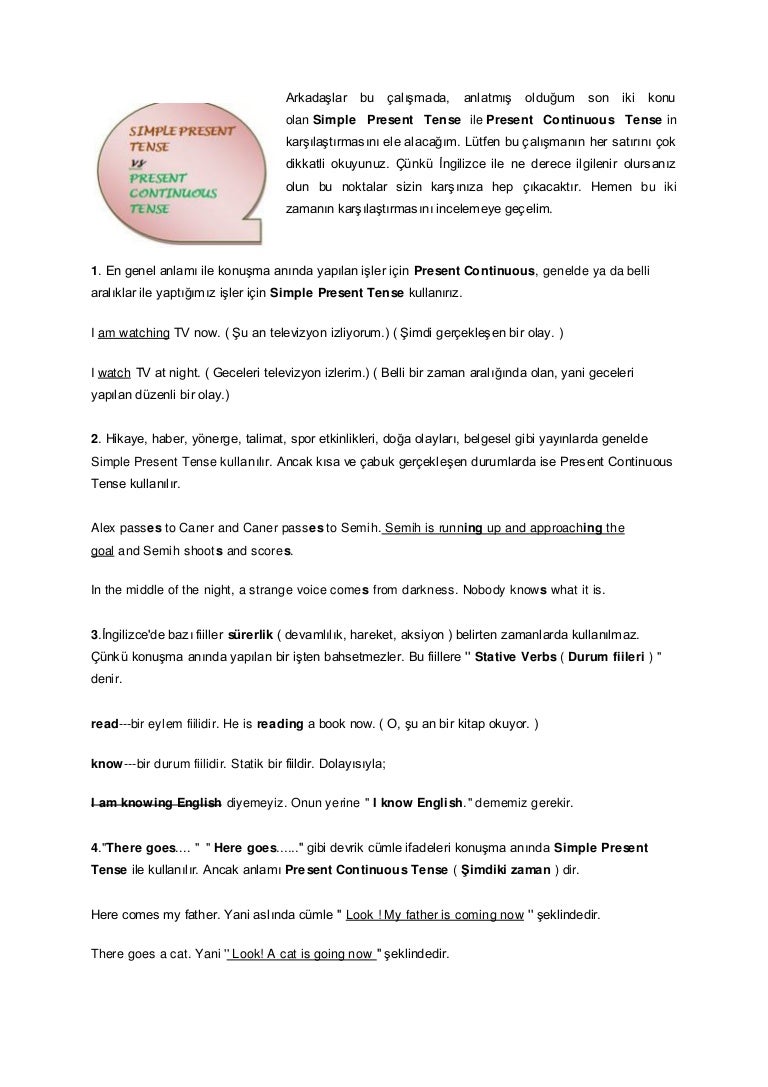 Ingilizce Simdiki Zaman Konu Anlatimi Ve Alistirmalar Present