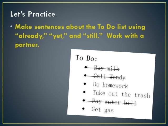 Present Perfect With Already Yet Still