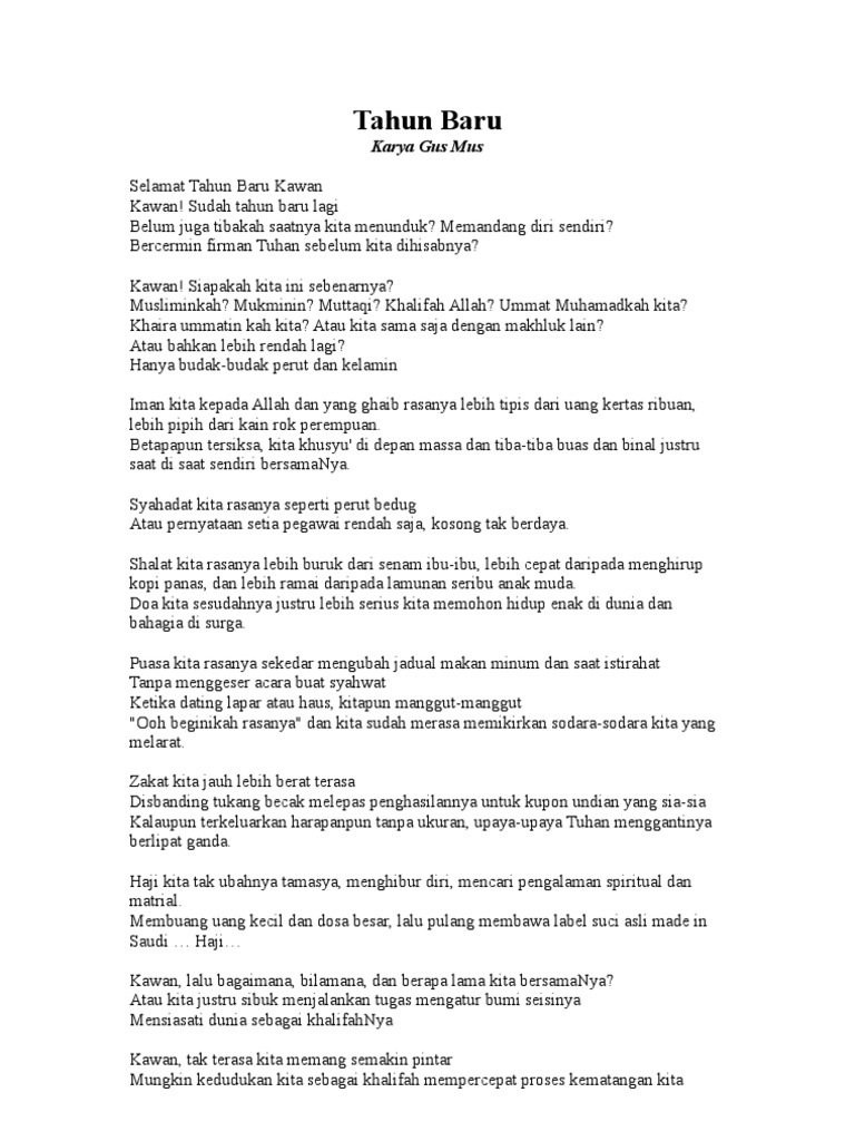 Puisi Gus Mus Selamat Tahun Baru Sejarah Ri