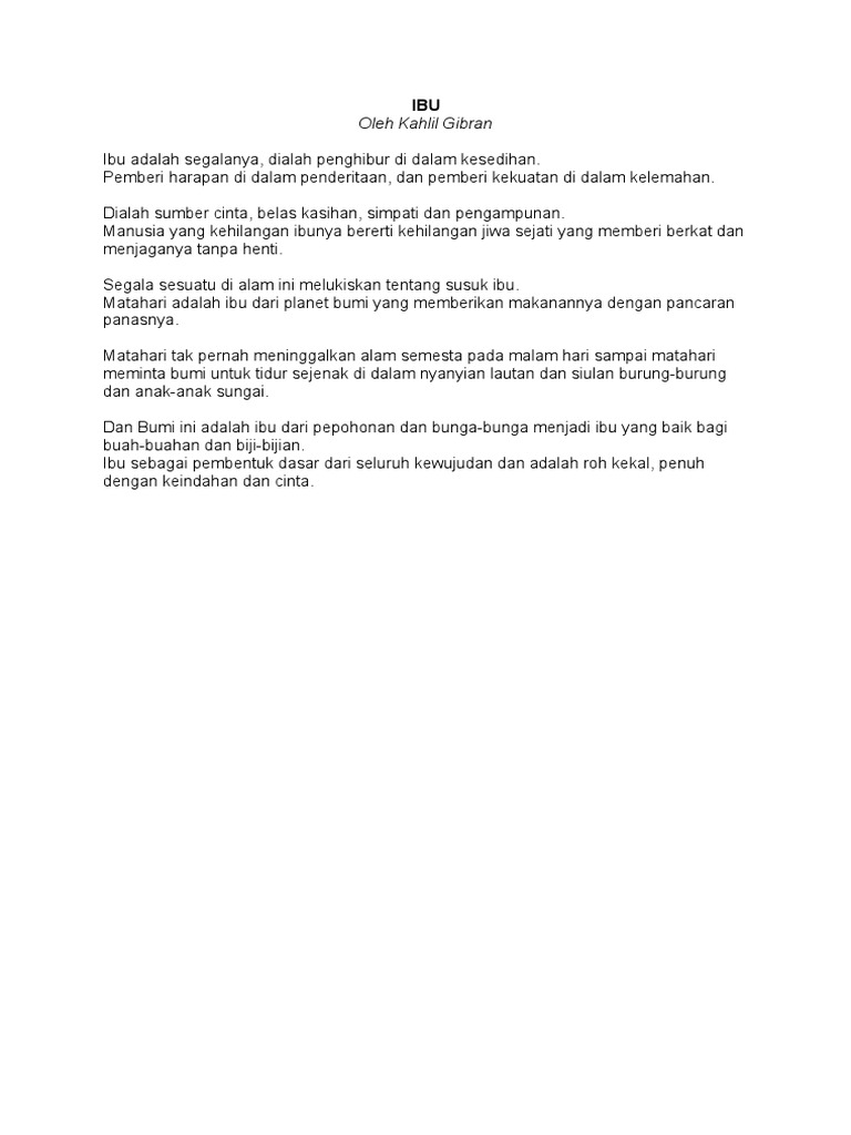 Puisi ibu oleh kahlil gibran. Ia lebih biasa biasa saja lebih tak kentara lebih intelektuil jorge luis borges. Para pakar menyatakan sekalipun kearifan seorang anak sangat erat. Makalah ini kami tulis berdasarkan hasil pencarian kami dari beberapa sumber.