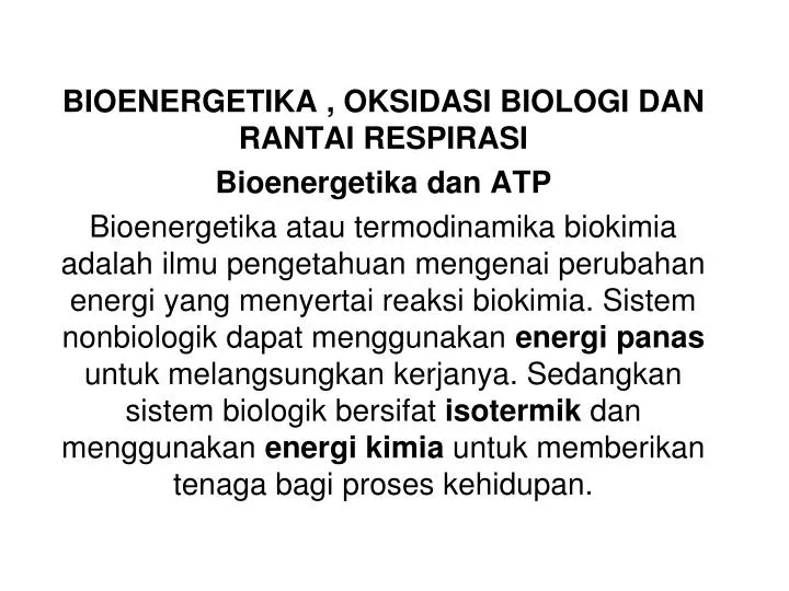 Bioenergetika Oksidasi Biologi Dan Rantai Respirasi Sigit Sigit