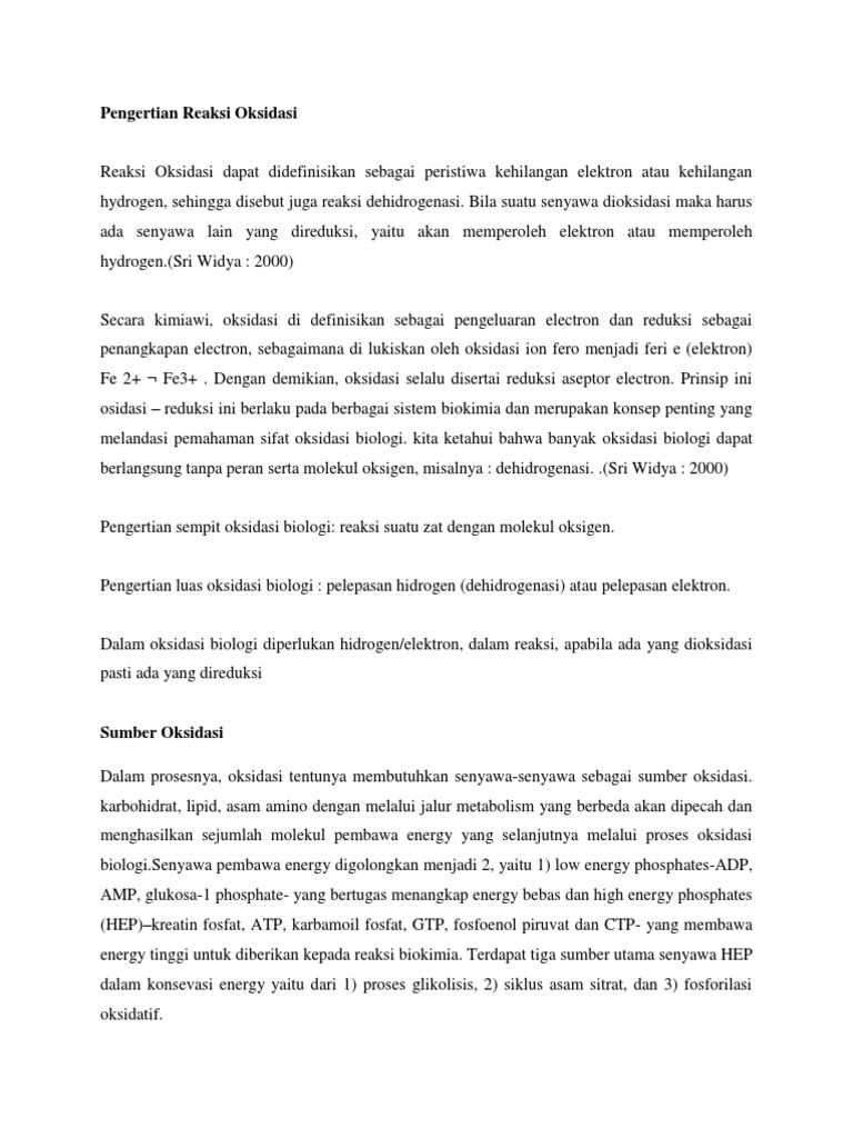 Pengertian Reaksi Oksidasi Docx