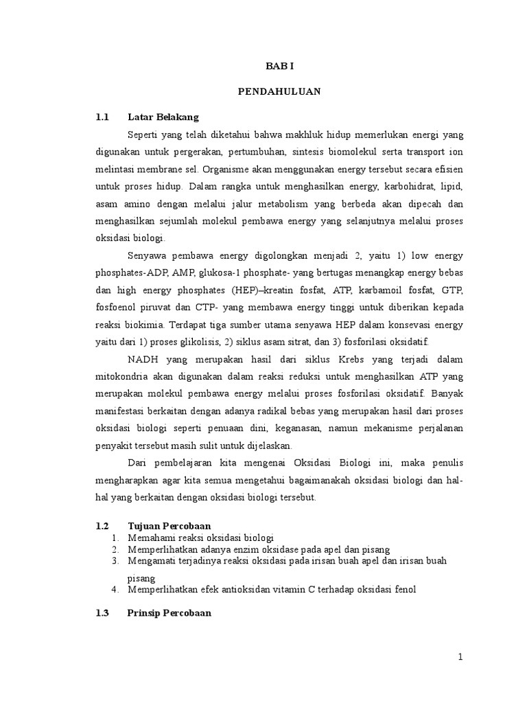 Laporan Biokimia Oksidasi Biologi
