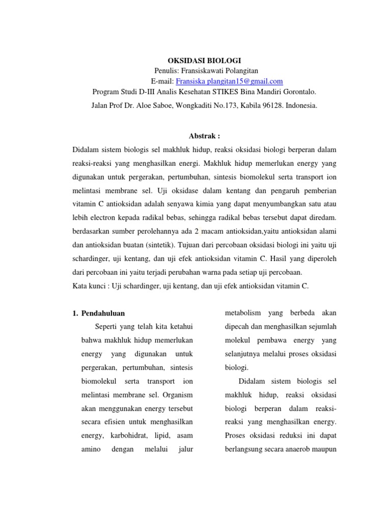 Oksidasi Biologis Akbid Paramata Kabupaten Muna