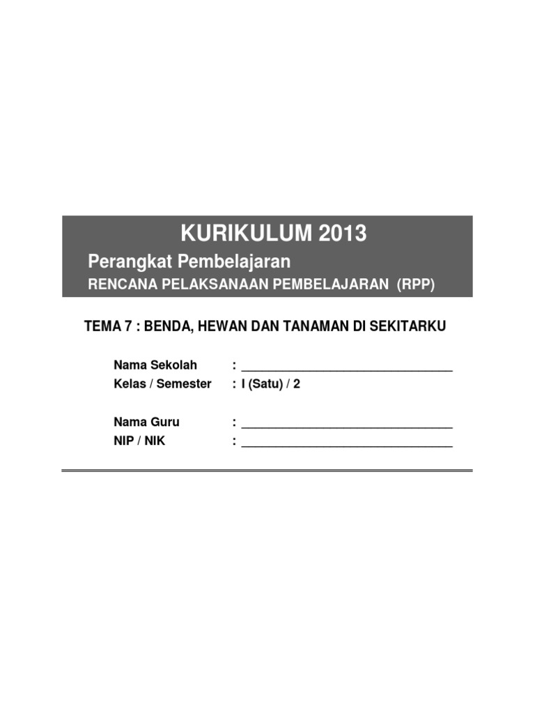 7 Rpp Sd Kelas 1 Semester 2 Benda Hewan Dan Tanaman Di Sekitarku