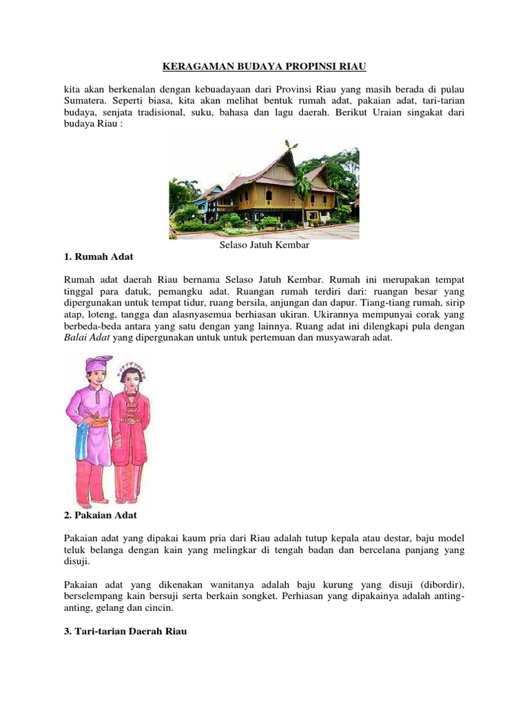 Riau Tarian Adat Rumah Adat Pakaian Adat Senjata Tradisional