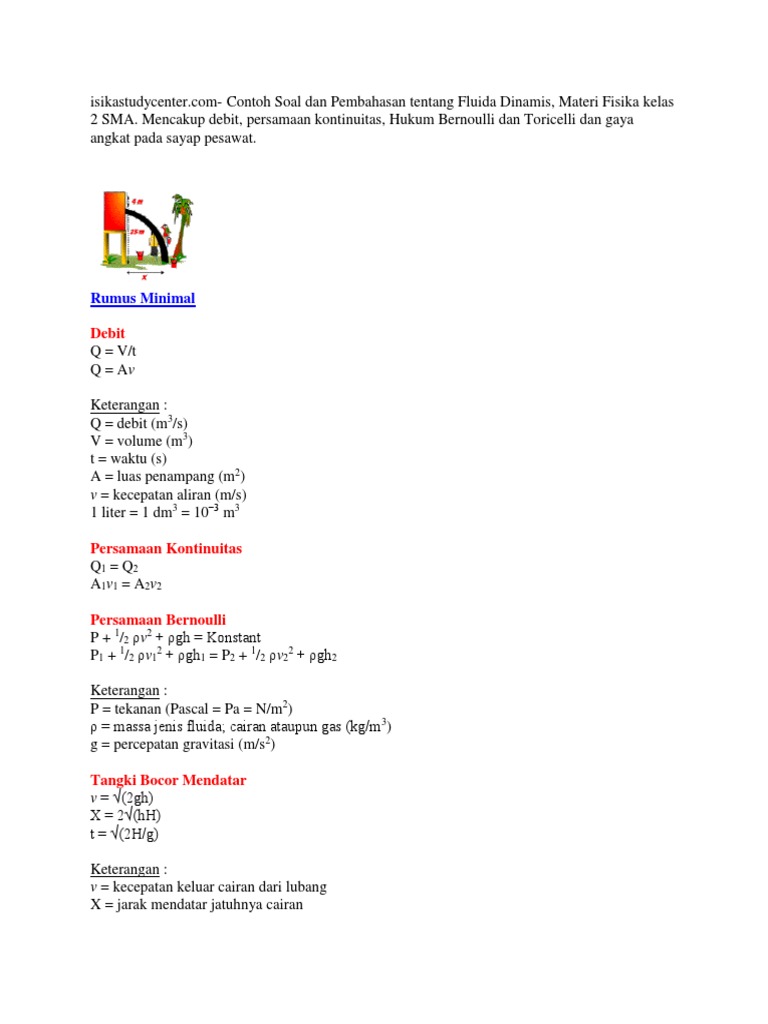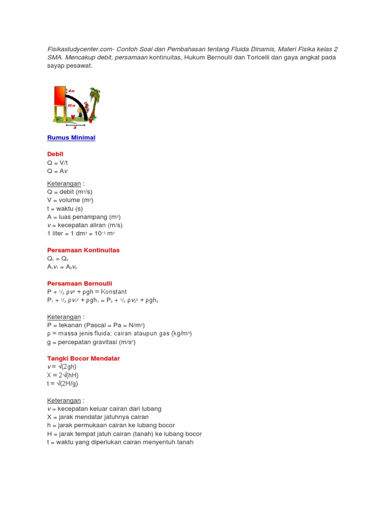 Definisi lain dari fluida adalah zat yang dapat. Hal ini merujuk pada kata fisika yang berasal dari bahasa yunani yaitu fysikos fysikos yang mempunyai. Mencakup debit persamaan kontinuitas hukum bernoulli dan toricelli.
