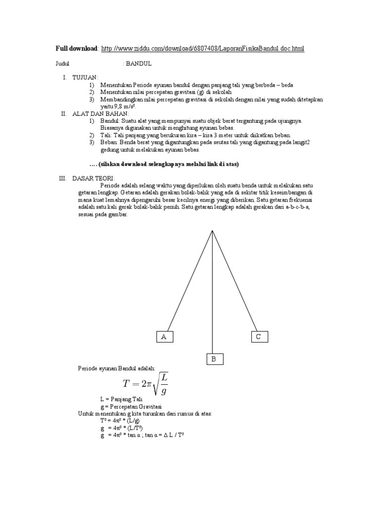 Pdf Percobaan Osilasi Bandul Fisis Bentuk Sederhana Sebagai Tugas