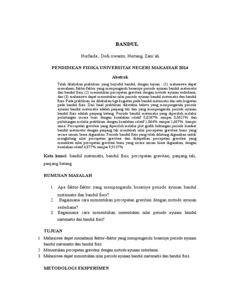 Laporan Bandul Herayanti Yusuf Academia Edu