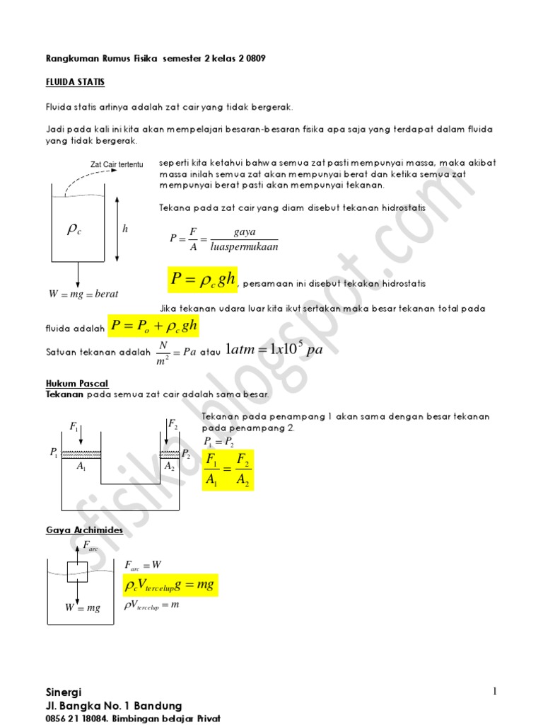 Vendy Bimbingan Belajar Rangkuman Rumus Fisika Mekanika Fluida
