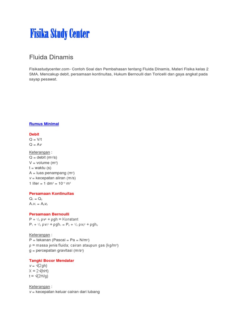 Rumus Fisika Fluida Statis Dan Fluida Dinamis