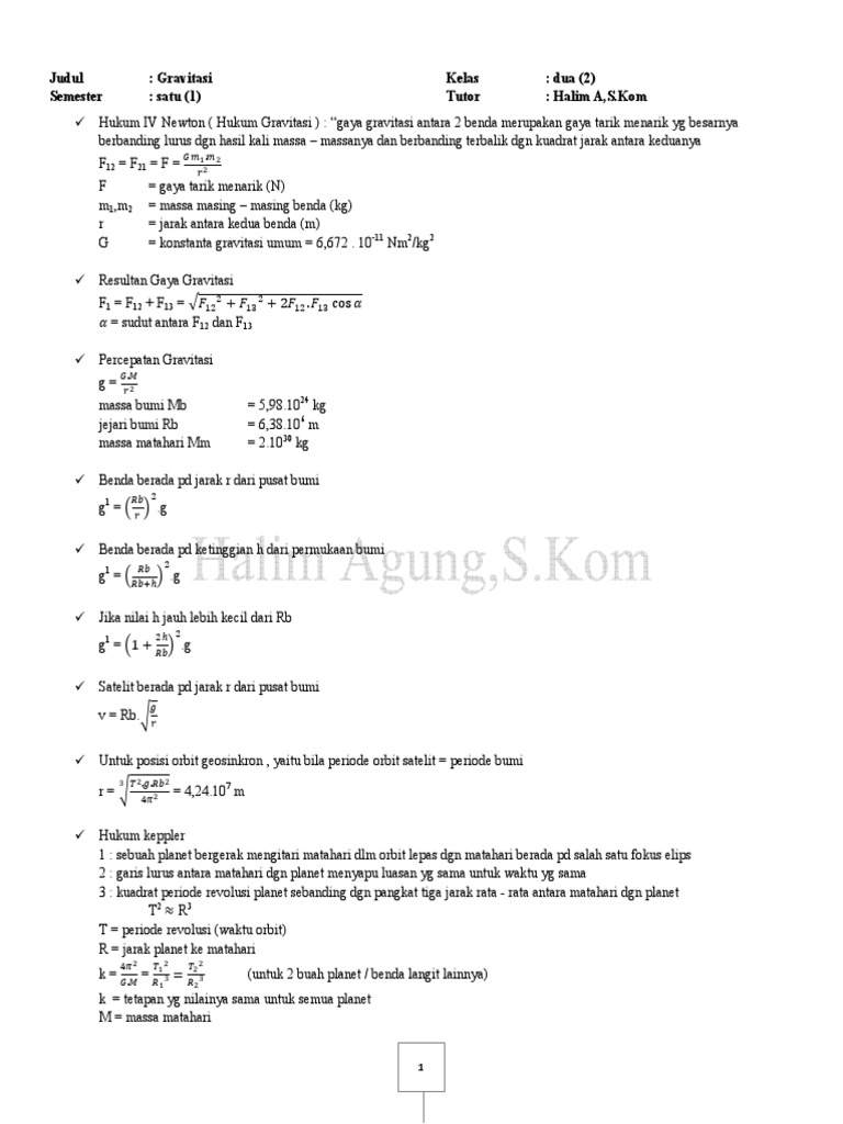Rumus Fisika Kelas 2 Gravitasi Mafiadoc Com