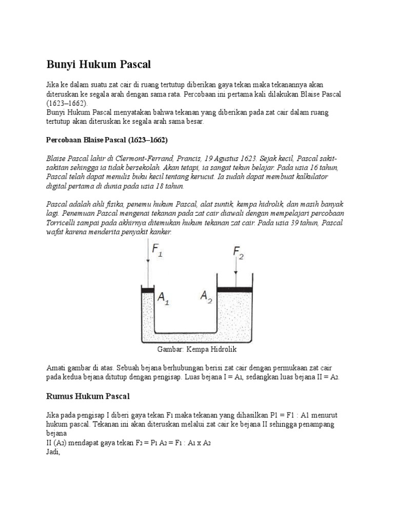 Bunyi hukum pascal dan rumus hukum pacsal beserta penerapan hukum pascal dalam kehidupan sehari hari seperti dongkrak dan. Rumus fisika skl un2012.