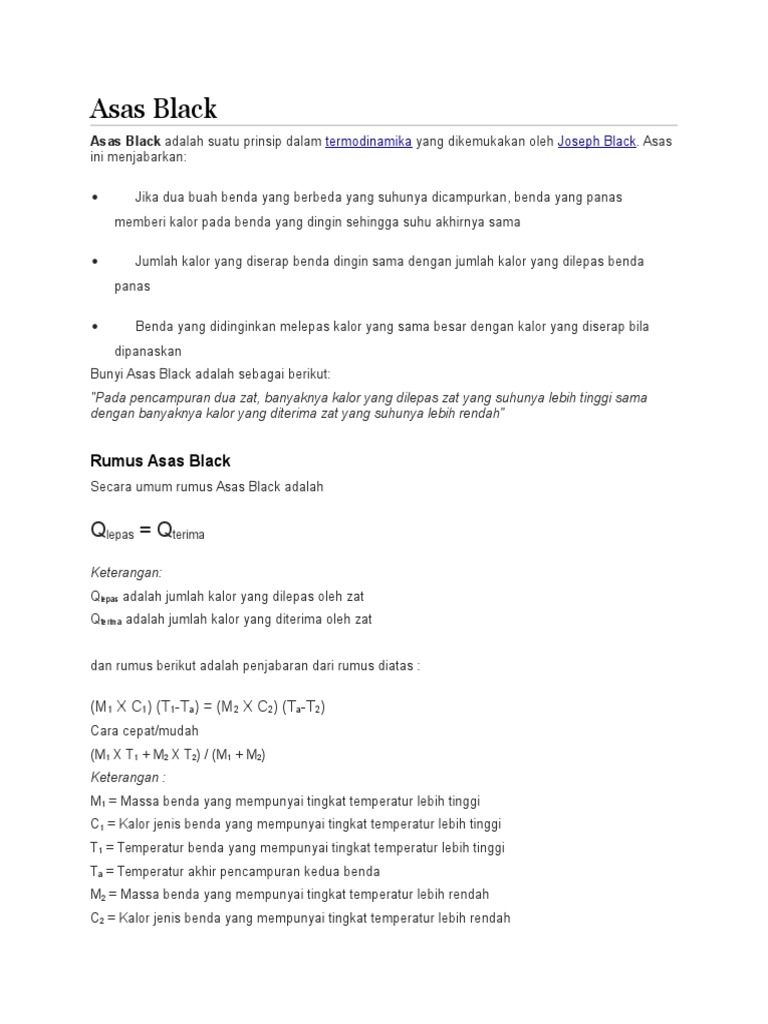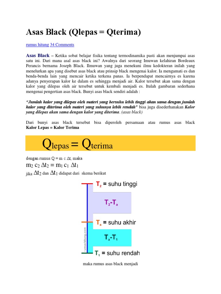 Asas Black Pengertian Bunyi Rumus Dan Contoh Soal