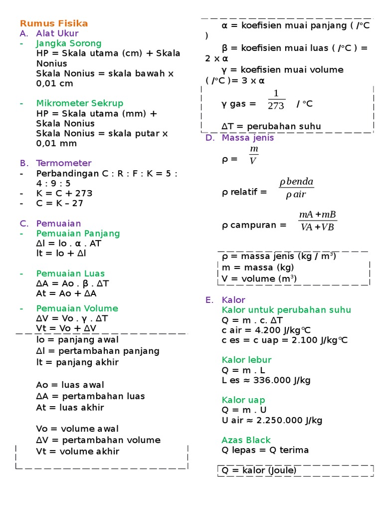 Fisika Rangkuman Rumus Kelas 7 8 9