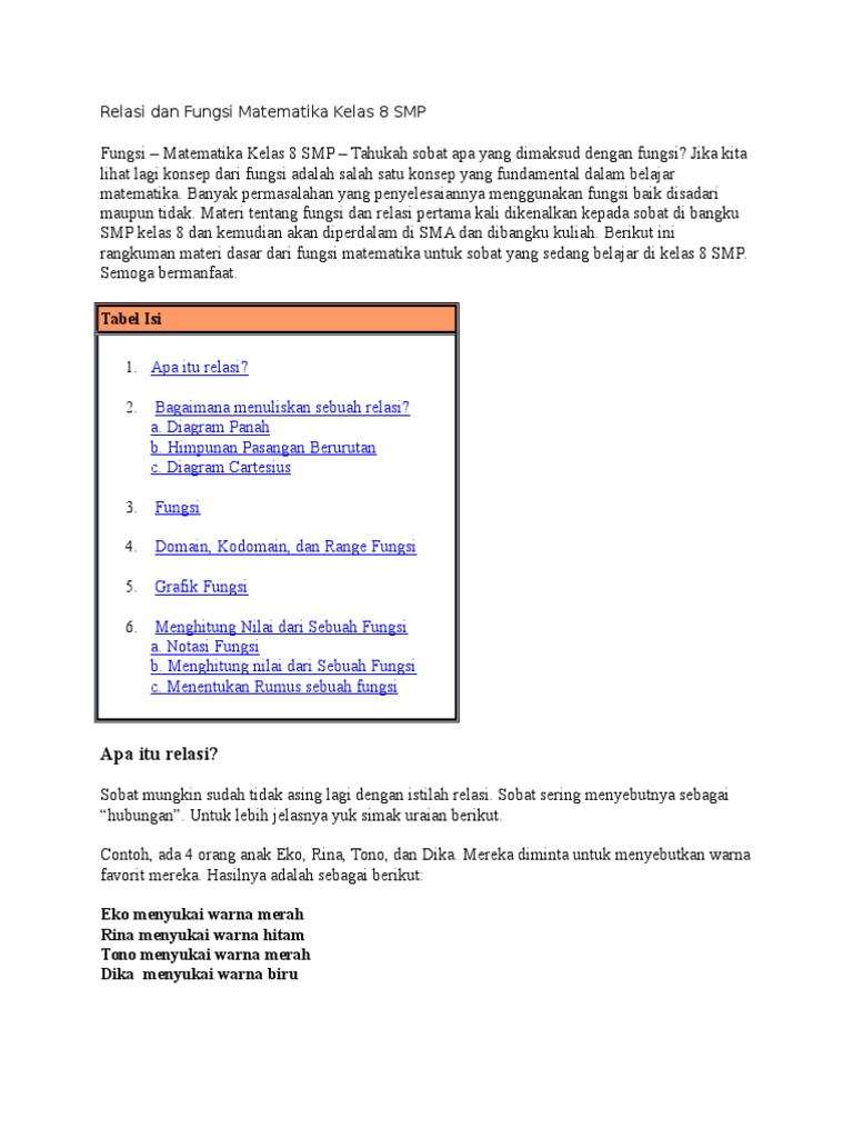 Relasi Dan Fungsi Matematika Kelas 8 Smp