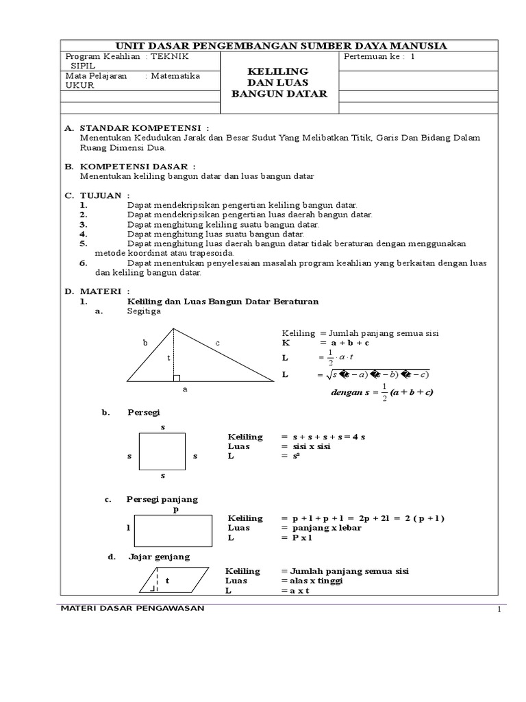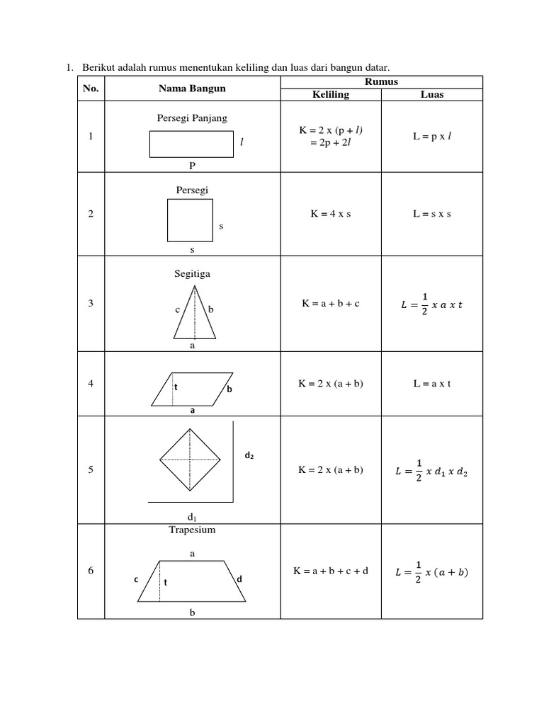 Rumus Luas Dan Keliling Bangun Datar Pdf Document