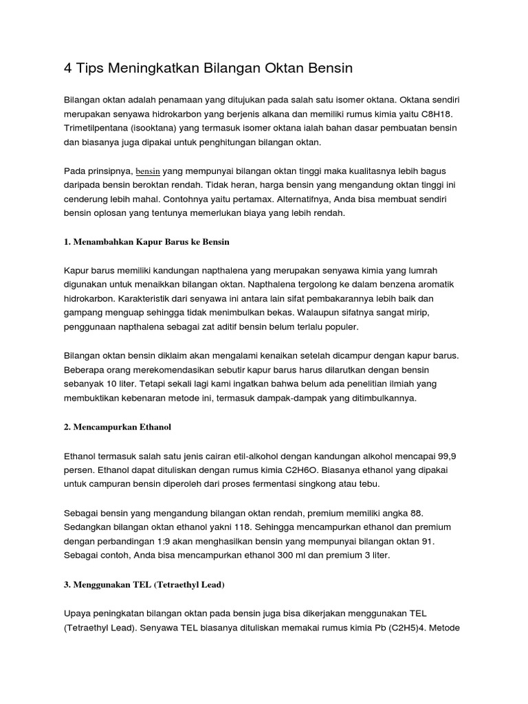 4 Tips Meningkatkan Bilangan Oktan Bensin
