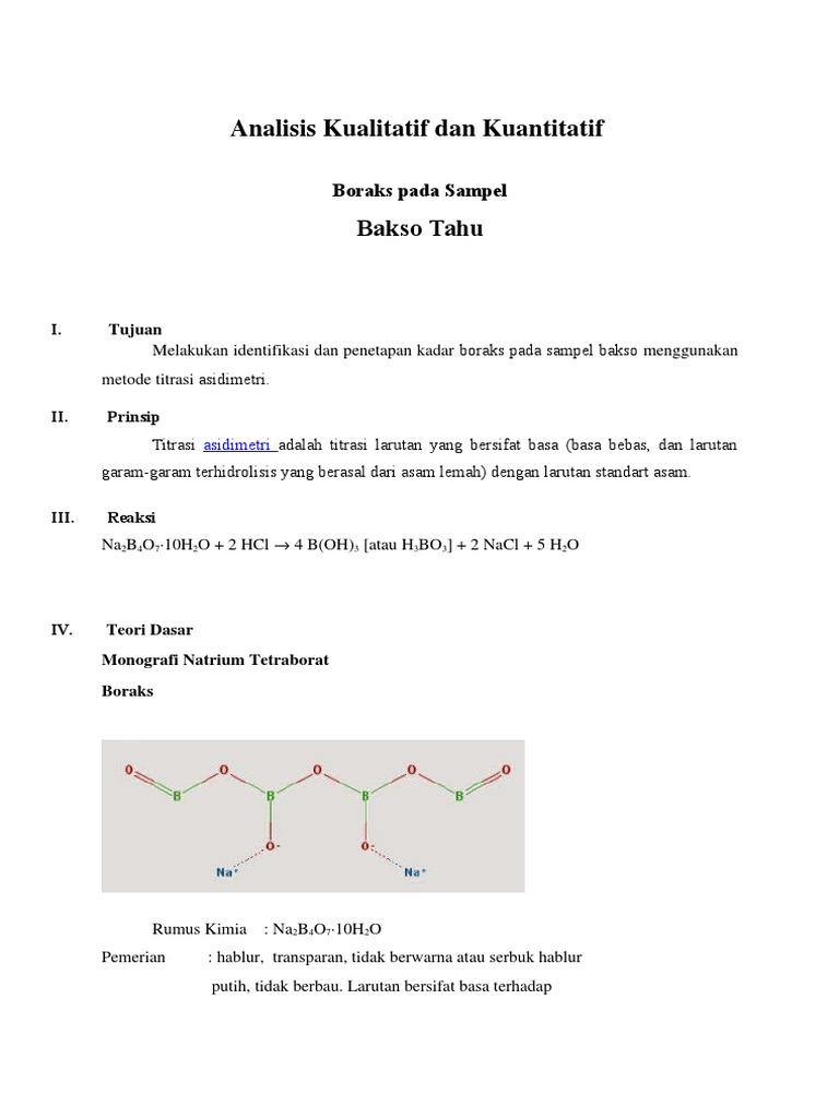 Analisis Kualitatif Dan Kuantitatif Boraks Pada Sampel